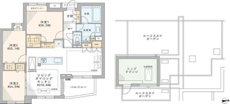 約50m2のルーフスカイガーデン&トップラウンジ付き住戸