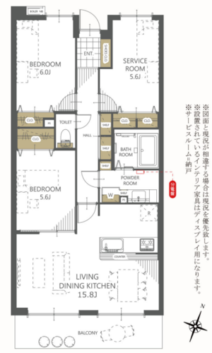 | 位置 | 最上階 | 部屋 | LDK15畳以上 / 全居室フローリング |