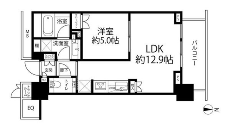 | 間取り | 1LDK + TR | 方角 | 北 |