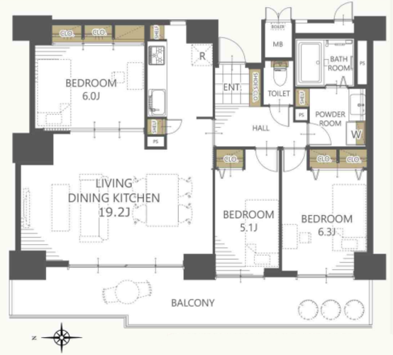 | 専有面積 | 壁芯 82.71㎡ | バルコニー面積 | 15.0㎡ |
