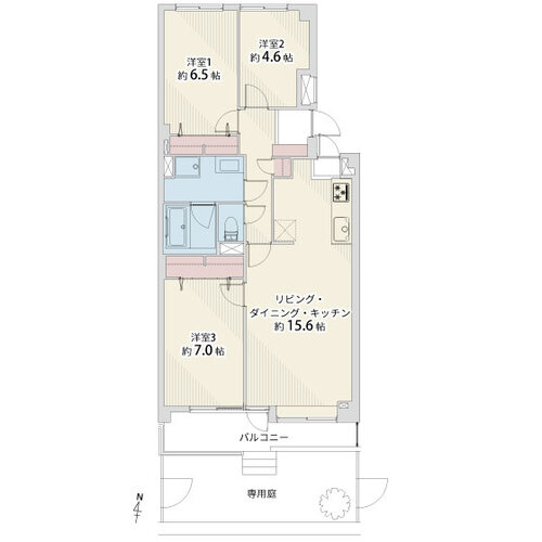 | 間取り | 3LDK + 専用庭 | 方角 | 南東 |
