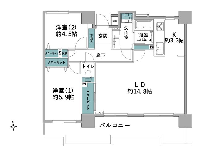 | 間取り | 2LDK | 方角 | 南 |
