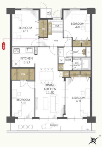 | 位置 | 部屋 | 全居室フローリング | |