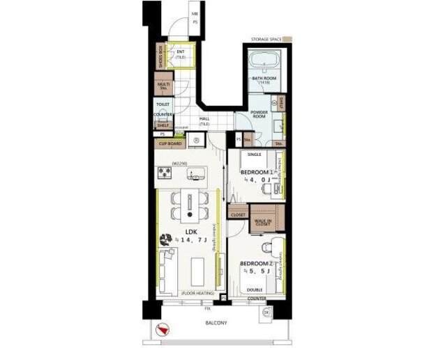 2LDK/62.6㎡