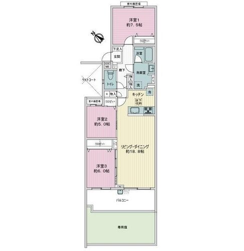3LDK + 専用庭/85.11㎡