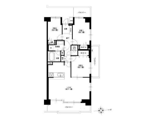 | 専有面積 | 壁芯 70.37㎡ | バルコニー面積 | 18.12㎡ |