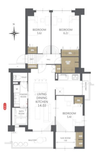 | 位置 | 部屋 | 全居室フローリング | |