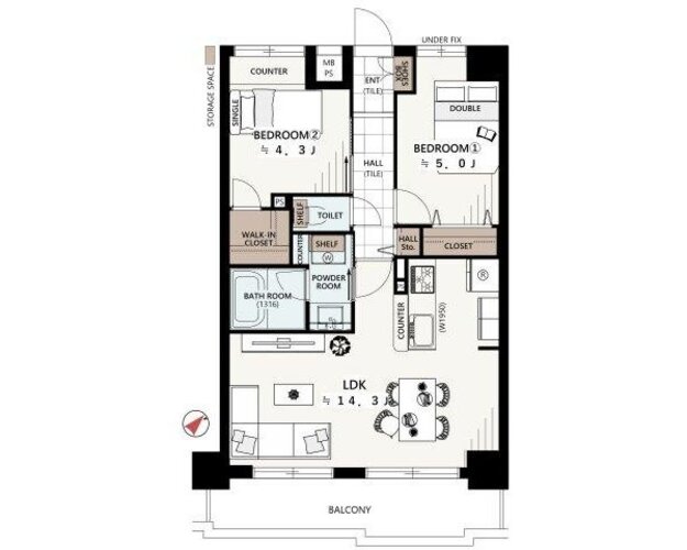 2LDK + WIC/55.2㎡