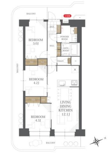 | 位置 | 角部屋 | 部屋 | 全居室フローリング |