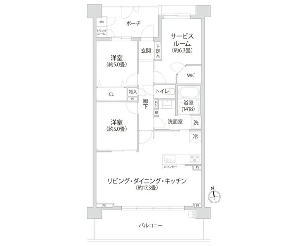 | 間取り | 2LDK + S+WIC+TR | 方角 | 南 |