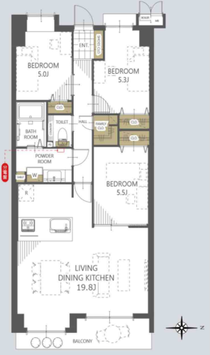 | 間取り | 3LDK + FC | 方角 | 東 |