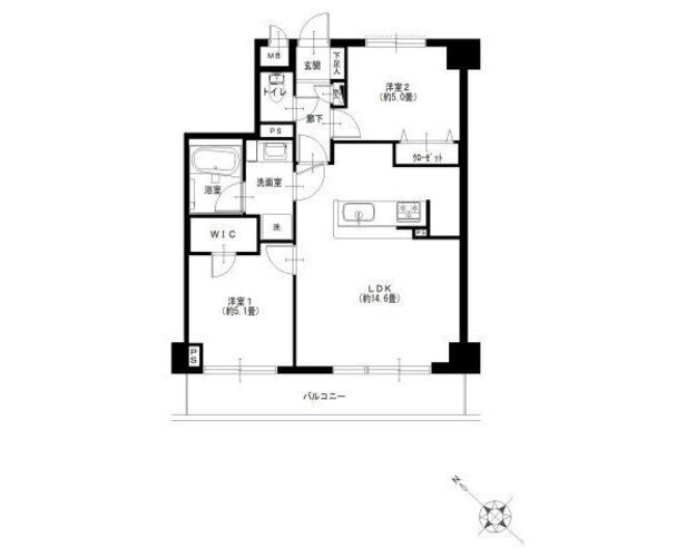 | 間取り | 2LDK + WIC | 方角 | 南西 |