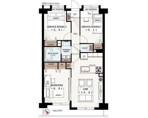 1LDK + 2S(納戸)/60.09㎡