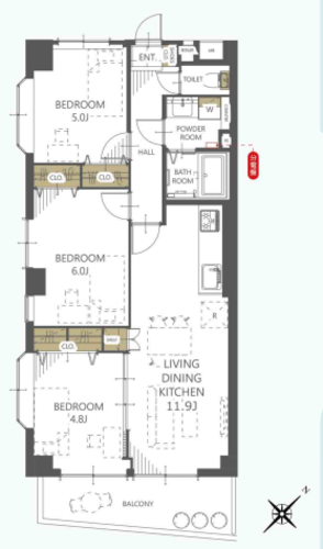 | 間取り | 3LDK | 方角 | 南東 |