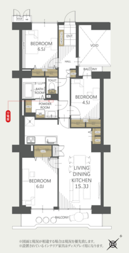 | 位置 | 部屋 | LDK15畳以上 / 全室6畳以上 / 全居室フローリング | |