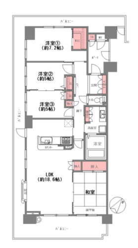 | 浴室・トイレ・洗面所 | 浴室乾燥機 / 温水便座洗浄機 | バルコニー | 3面バルコニー |