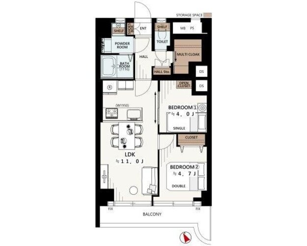 2LDK + M/49.5㎡