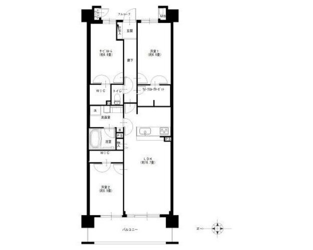 | 間取り | 2LDK + S(納戸)+2W+WTC | 方角 | 西 |