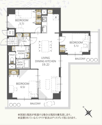 | 専有面積 | 壁芯 77.76㎡ | バルコニー面積 | 18.0㎡ |
