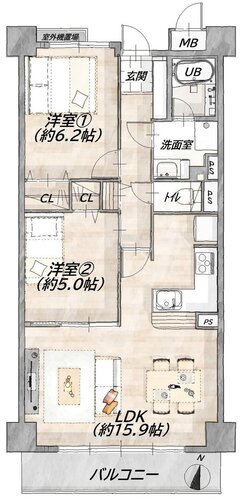| 間取り | 2LDK | 方角 | 南 |