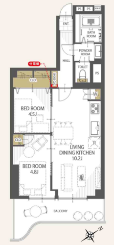 | 間取り | 2LDK | 方角 | 南東 |