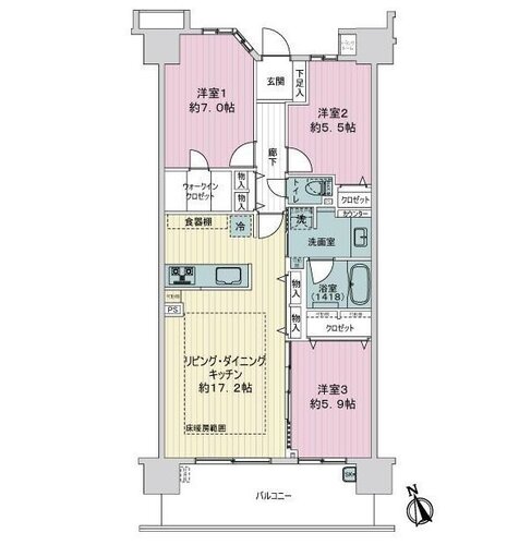 | 専有面積 | 壁芯 80.44㎡ | バルコニー面積 | 12.8㎡ |