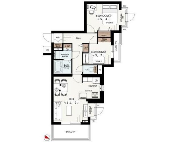 | 間取り | 2LDK | 方角 | 北東 |