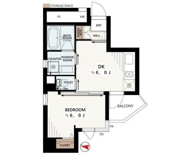 | 間取り | 1DK | 方角 | 西 |