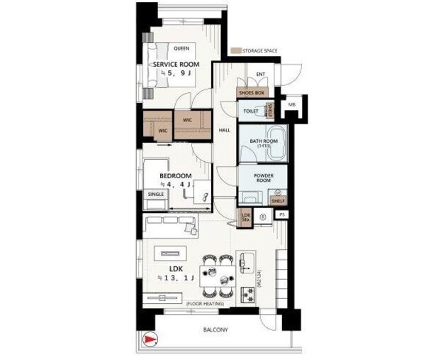 1SLDK + 2WIC/58.38㎡