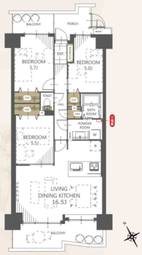 | 所在階 | 3階 | 総戸数 | 343 戸 |