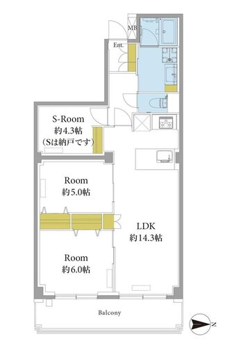 | 間取り | 2LDK + S(納戸) | 方角 | 東 |