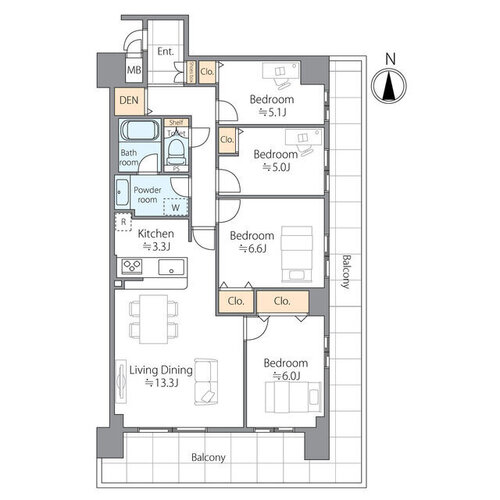 | 間取り | 4LDK + DEN | 方角 | 南 |
