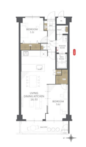 | 間取り | 2LDK + WIC | 方角 | 西 |
