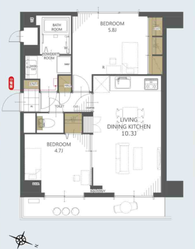 | 専有面積 | 壁芯 50.4㎡ | バルコニー面積 | 2.8㎡ |