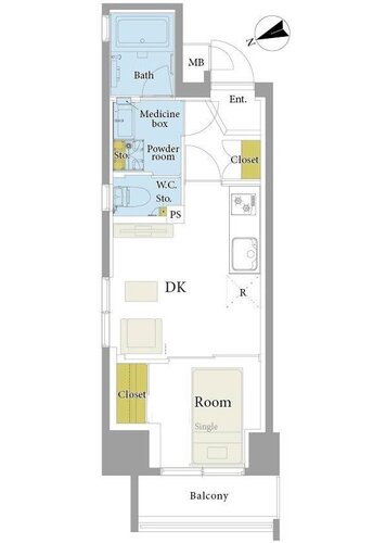 | 間取り | 1DK | 方角 | 北西 |