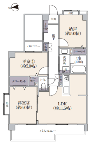 | 浴室・トイレ・洗面所 | 浴室乾燥機 / 追い焚き / 浴室1216サイズ / 温水便座洗浄機 | バルコニー | |