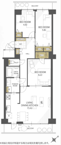 | 間取り | 3LDK + WIC | 方角 | 南東 |