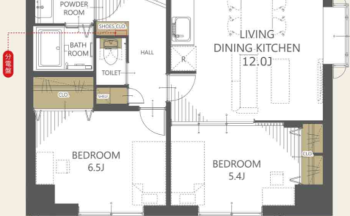 | 位置 | 角部屋 / 最上階 | 部屋 | LDK15畳以上 / 全室6畳以上 / 全居室フローリング |