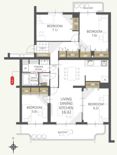 | 専有面積 | 壁芯 95.0㎡ | バルコニー面積 | 13.8㎡ |