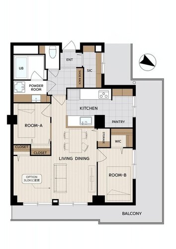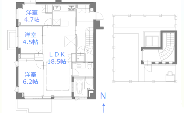 | 間取り | 2LDK + W | 方角 | 北東 |