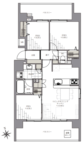 | 浴室・トイレ・洗面所 | 浴室乾燥機 / 追い焚き | バルコニー | 2面バルコニー / 両面バルコニー |