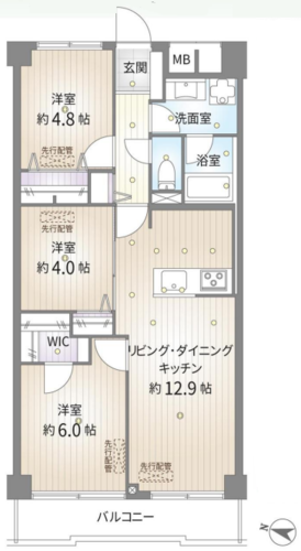 | 間取り | 3LDK + WIC | 方角 | 西 |