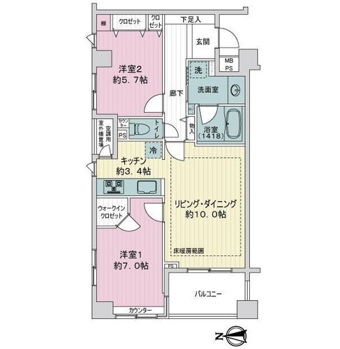 2LDK + WIC/62.0㎡
