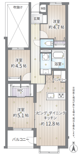 3LDK + パントリー +WIC/64.34㎡