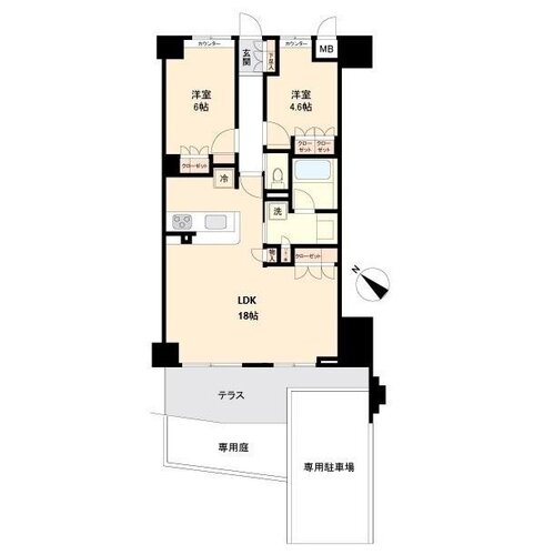 | 間取り | 2LDK + 専用庭 | 方角 | 南西 |
