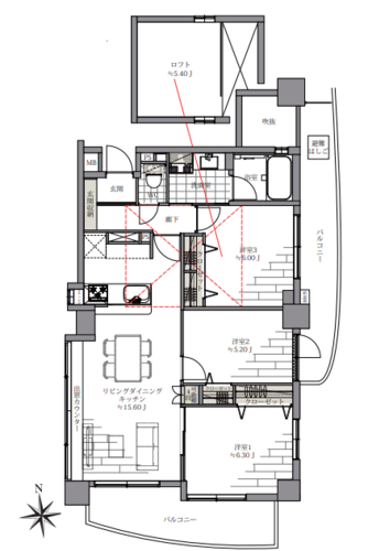 | 位置 | 角部屋 / 最上階 | 部屋 | LDK15畳以上 / ロフトあり / 全居室フローリング |