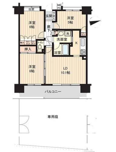 | 間取り | 3LDK + 専用庭 | 方角 | 南東 |