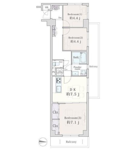 | 専有面積 | 壁芯 60.46㎡ | バルコニー面積 | 14.76㎡ |