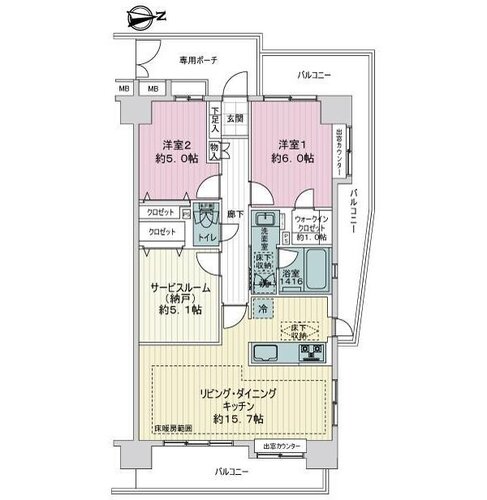 | 位置 | 角部屋 | 部屋 | LDK15畳以上 / 全居室フローリング |