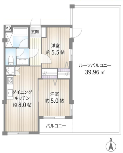 2DK + ルーフバルコニー/50.22㎡